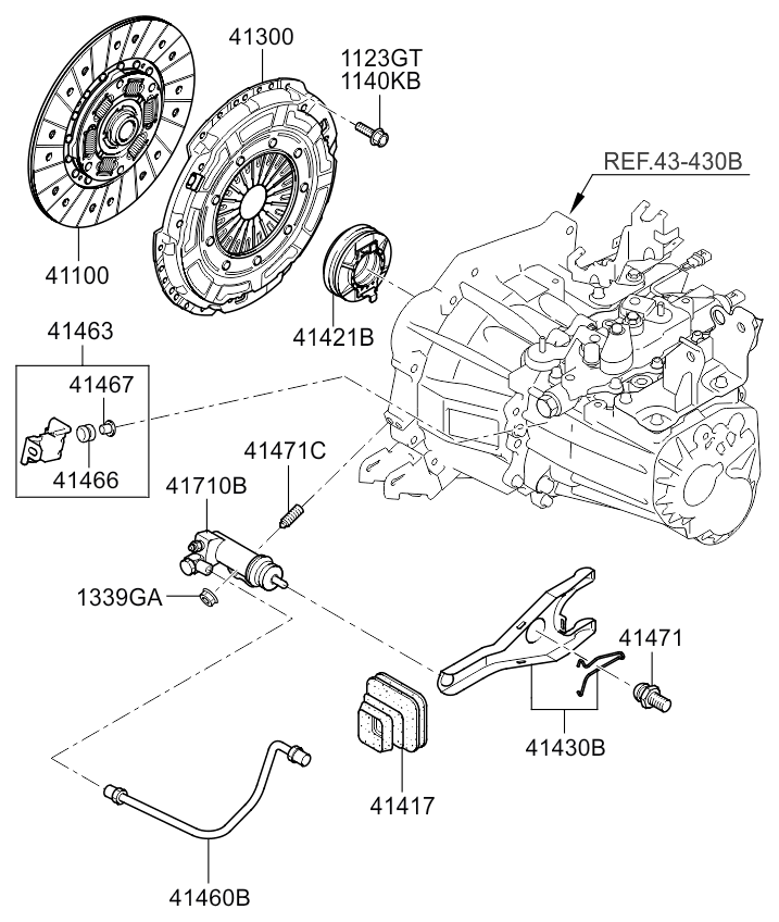 | 41430B | 41430-23200 | 26.08.2010 - 11.03.2013 | 1 | FORK ASSY-RELEASE | Body Type: COUPE - 2DR 5P; Engine Capacity: 1600 CC - GAMMA; Fuel Type: GASOLINE - UNLEADED; Transaxle: MANUAL T/M - 6 SPEED 2WD |