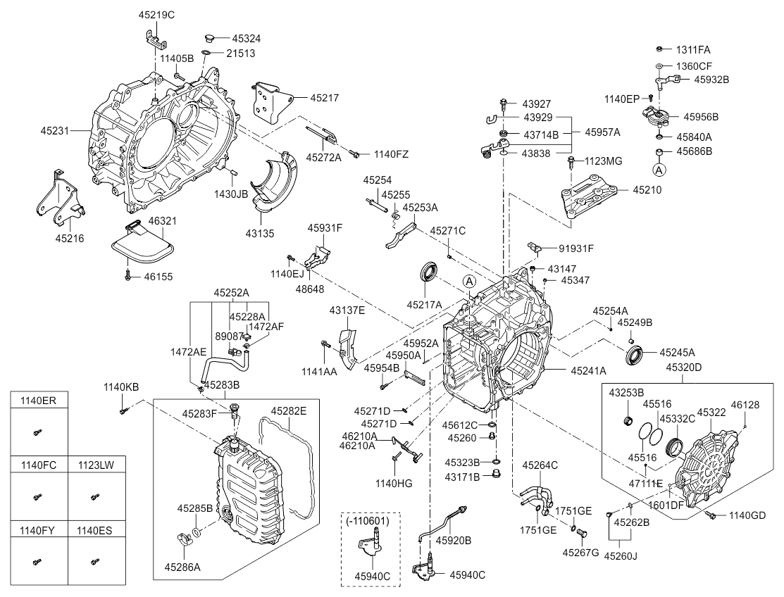 | 45320D | 45320-3B601 | 11.09.2010 - 06.03.2013 | 1 | COVER ASSY-CASE RR | Body Type: COUPE - 2DR 5P; Engine Capacity: 2000 CC - THETA 2; Fuel Type: GASOLINE - UNLEADED; Transaxle: AUTO - 6 SPEED 2WD |