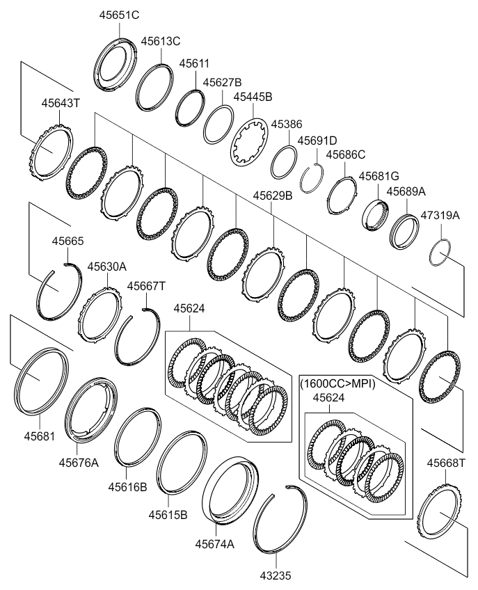 | 45667T | 45667-39240 | 16.10.2008 - 24.08.2010 | 1 | RING-SNAP, T=2.4>T=2.4MM | Body Type: SEDAN - 4DR 5P; Engine Capacity: 1600 CC - GAMMA; Fuel Type: GASOLINE - UNLEADED; Transaxle: AUTO - 4 SPEED 2WD |